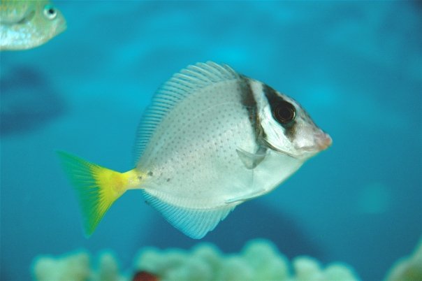 Prionurus punctatus is a species of surgeonfish belonging to the family Acanthuridae. Commonly known as the spotted surgeonfish or the yellowspot surgeonfish, it inhabits coral reefs in the Indo-Pacific region. These fish are recognized by their distinctive coloration, which includes a yellowish body with numerous small blue spots scattered across the scales. They play a role in reef ecosystems by grazing on algae, contributing to the health and balance of coral reef communities.