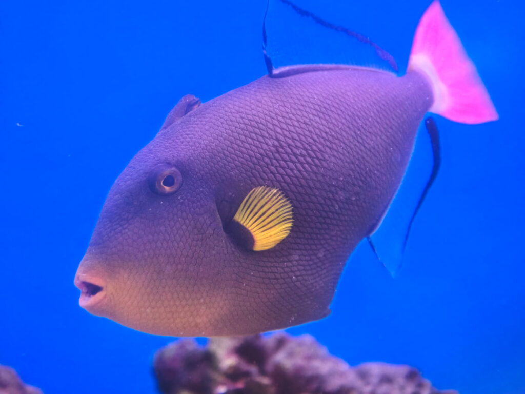 The common name highlights the distinctive pink tail that makes this triggerfish visually appealing